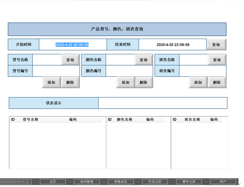 條碼管理 條碼中包含了5種有類型的數(shù)據(jù),對于其中較為穩(wěn)定的部分,比如,車型,顏色,班次進(jìn)行維護(hù)。 A17769079007H46B1706200001,這是一個(gè)標(biāo)準(zhǔn)條碼,其中A1776907900表示車型信息,7H46表示顏色編碼,B代表班次,170520代表日期,后面00001代表產(chǎn)品編號。 參數(shù)設(shè)置 設(shè)置壓力傳感器檢測的最小壓力值,壓力超限值,按壓持續(xù)時(shí)間等等。 |
